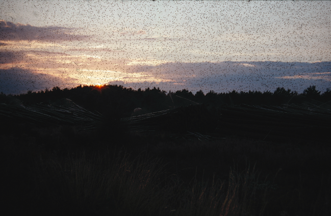 Les chimies utilisées pour les pellicules photo, sont fondamentalement instables sur le plan chimique, surtout les plus anciennes. Leur évolution et dégradation dans le temps sont aléatoires. Ce tirage est issu d’une série de diapositives familiales conservées et oubliées dans une boîte en carton. Après 30 ans de lente dégradation, des moisissures ont progressivement colonisé la gélatine. Le résultat de ce processus est étonnant